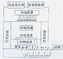 1 試驗1.1材料及藥品材料未漂白純棉織物藥品金紅石型二氧化鈦(工業級),氧化鋅(工業級),有機黏合劑(工業級),N,N-二甲基甲酰胺(DMF,分析純),六偏磷酸鈉(分析純)。1.2試驗儀器LTF 97885涂層機(瑞士),控溫織物隔熱性能測試箱(自制,見圖1),LD電子天平(沈陽龍騰電子有限公司),D-7401-50型電動攪拌器(天津市華興科學儀器廠),YG 065電子式織物強力機(萊州市電子儀器有限公司),202電熱恒溫干燥箱(天津市實驗儀器廠)。