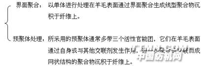 “加法”防氈縮處理,主要利用聚合物沉積在羊毛纖維表面,以達到防氈縮的效果。這些聚合物都具有一共同特點,即至少部分聚合反應需要在羊毛表面進行。根據這些樹脂在使用時所處的狀態,大致可分為兩類: