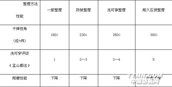 注 由于要求降低織物上游離甲醛含量,耐久壓燙整理評級時,干彈性角及洗可穿評級標準都有降低。