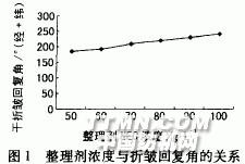 由表1知,NEC樹脂整理織物的干折皺回復角(經+緯)最大,強力保留率也較好,因此選用低甲醛樹脂整理劑NEC做進一步試驗。2.1.2 整理劑濃度的影響.jpg)