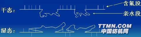 去污作用:填平;電荷斥污;界面親水。工藝:易去污/耐久壓燙 二浸二軋---拉幅烘----焙烘 -----洗、烘、柔軟 有機氟拒污與易去污整理一般有機氟拒污整理在洗滌時不易去污,也易再沾污。 與聚氧乙烯形成嵌段共聚物,帶入親水部分??椢锔蓱B時,含氟基團覆蓋織物表面,拒油污;洗滌時,聚氧乙烯親水鏈段撐開,污物脫落不會再沾污。.jpg)