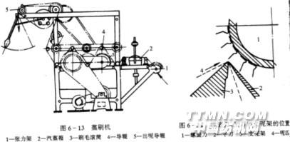 起毛、刷毛、剪毛、電壓、蒸呢等。1、起毛 利用鋼針或刺果從織物表面拉出一層絨毛。 鋼絲起毛機,刺果起毛機,起毛、剪毛聯合機。