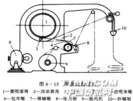 2、蒸呢蒸呢:毛織物在張力、壓力條件下用蒸汽處理一段時間的加工過程。 目的:永久定形。尺寸穩定,平整,光潔,柔軟、彈性。 蒸呢機:單滾筒蒸呢機 雙滾筒蒸呢機 罐蒸機