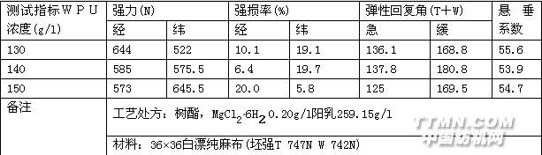表2. 不同濃度WPU的整理效果
