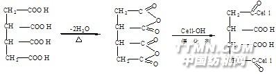 對于各種多元羧酸,如以其反應性和抗皺性作為標準,則在堿性催化劑的存在下,每個多元羧酸分子中最少必須含有三個羧基。隨著多元羧酸中羧基數量的增加,加工織物的防皺性亦提高。其中的堿性催化劑與多元羧酸反應生成的多元羧酸鹽,也可以作為纖維素纖維酯化反應和交聯的自催化劑和緩沖劑,對于加工織物的防皺性的改進十分有利。在堿催化的酯化反應中,一些能夠生成分子內五元環或六元環酸酐的多元羧酸如1,2,3,4-環戊烷四羧酸(CPTA)和1,2,3,4-丁烷四羧酸(BTCA)等的效果不錯。1,2,3-丙烷三羧酸(PTCA);檸檬酸(CA):