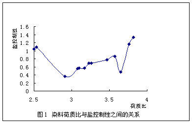 活性染料的鹽感度與染料的荷質比密切相關。一般而言,染料的荷質比越大,染料的鹽感度也就越大,但當染料的分子量偏大或偏小時例外。當染料分子量偏小時,即使染料的荷質比較小,仍
