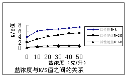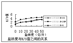 鹽濃度與K/S值之間的關系見下圖