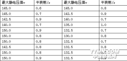 2·2 納米銀粒子對織物的抗靜電整理[4] 表2中,平均最大靜電壓值為140.9V,平均半衰期為0.8s。表2 納米銀粒子處理織物后的抗靜電測試結果