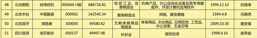 ---中國紡織服裝業上市企業統計表