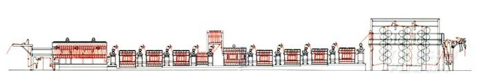 二、工藝流程:平幅進布→平洗槽(浸液)→軋車(軋液)→氣封→履帶箱(汽蒸堆置)→水封→水洗(四格加溫)→水洗(常溫)→軋車(扎液)或真空吸水→平幅濕落布。