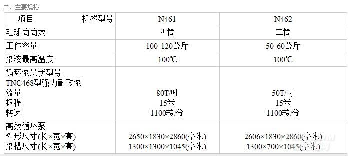 二.絞線(xiàn)染色機(jī)的規(guī)格和性能