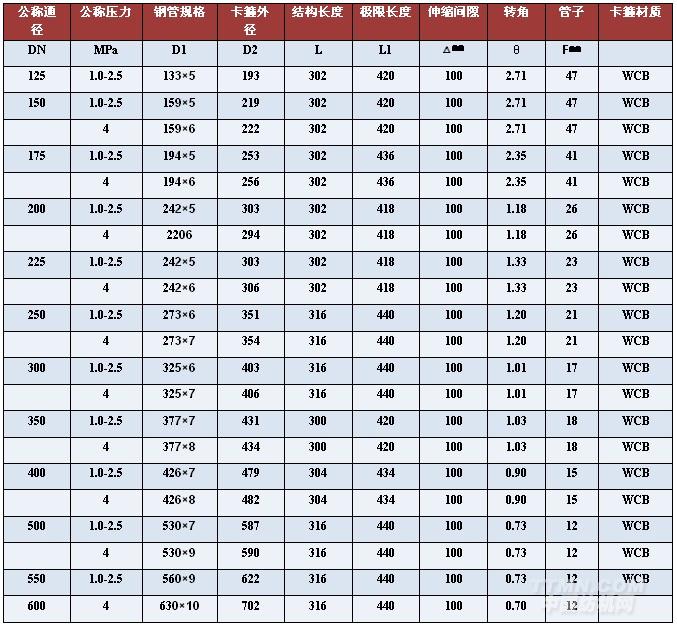 KRHSA系列卡箍式柔性伸縮補償連接器 主要規格系列技術參數表 伸縮間隙△=100㎜