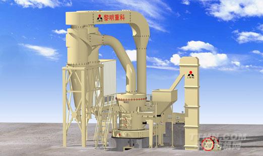 大塊狀物料經顎式破碎機破碎到所需粒度后,由提升機將物料送至儲料斗,再經振動給料機將物料均勻定量連續地送入主機磨室內進行研磨,粉磨后的粉子隨風機氣流上升,經分析機進行分級,符合細度的粉子隨氣流經管道進入旁路集粉器內,進行分離收集,經出粉閥排出即為成品粉子。氣流由旁路集粉器上端回風管吸入離心引風機,本機整個氣流系統是負壓密閉循環的,保證了生產現場環保衛生。