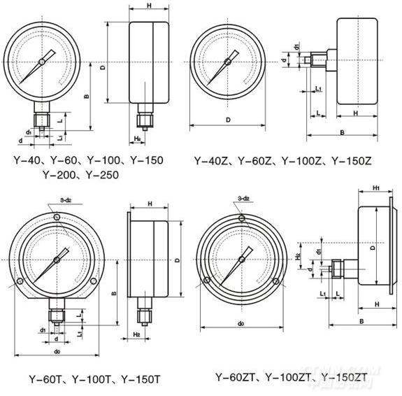 Y-60、Y-100、Y-150、Y-200一般壓力表