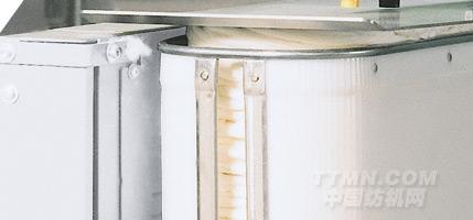 特呂茨勒將可靠的4上3下牽伸系統做進一步的改進,增加壓力棒。第四根皮輥確保牽伸系統出條端的條子無位移偏差。主牽伸區的可調節壓力棒確保即使短纖維也被控制和引導。與之前的并條機相比,有效牽伸寬度增加了15mm,可改善加工高蓬松度合成纖維時的運行性能。