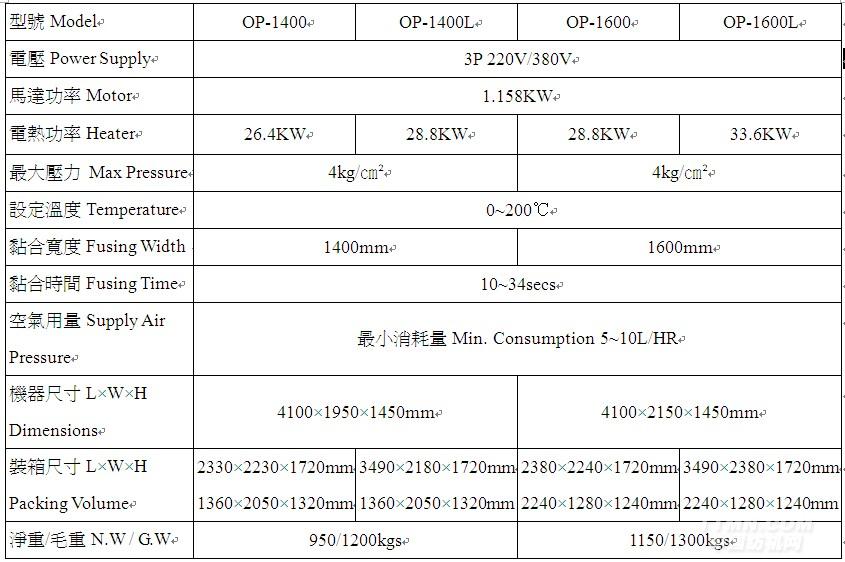 - [產品]-->OP-1400/1400L/1600/1600L連續式黏合機