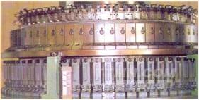下筒 織針的選取由每一路有一個織針選取裝置,來選取選針而達成控制織針的目的,當選取裝置在左邊位置動作時,形成針筒織針做浮線(平針),當位置動作在右邊時,形成集圈(半針),位置動作于中間形成成圈(出針)。提花機采用三功位式37級撥片選針原理,當撥片在左、中、右時即可在同路上完浮線(MISS),成圈(IT),集圈(TUCK),而后生產(chǎn)出各式各樣雙面小提花織物。選針由37級組成,因此可依織物園樣選擇選針桿,依36為循環(huán)斜紋排列或加入第37級形成"V",為72循環(huán)排列。針盆織針選用兩段設計,可更換凌角來選擇織針在每一路為浮線,或是成圈、集圈之必要。此機樣變換花樣時,無需增加任何生產(chǎn)成本,更換快速容易。