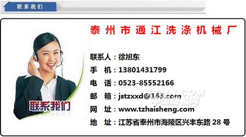 泰州市通江洗滌機械廠是生產羊毛洗滌機械專一廠家。本廠地處中國東部最發達的“長三角”地區,是京劇藝術大師梅蘭芳先生的故鄉,是目前該地區最大的洗滌機械生產基地。工廠生產的“通洋”牌系列洗滌機械是泰州市重點保護產品,企業連續十年榮獲“重合同、守信用單位”、“文明單位”、“中國質量檢驗協會會員單位”等殊榮,通過 ISO9001:2000國際質量體系認證。