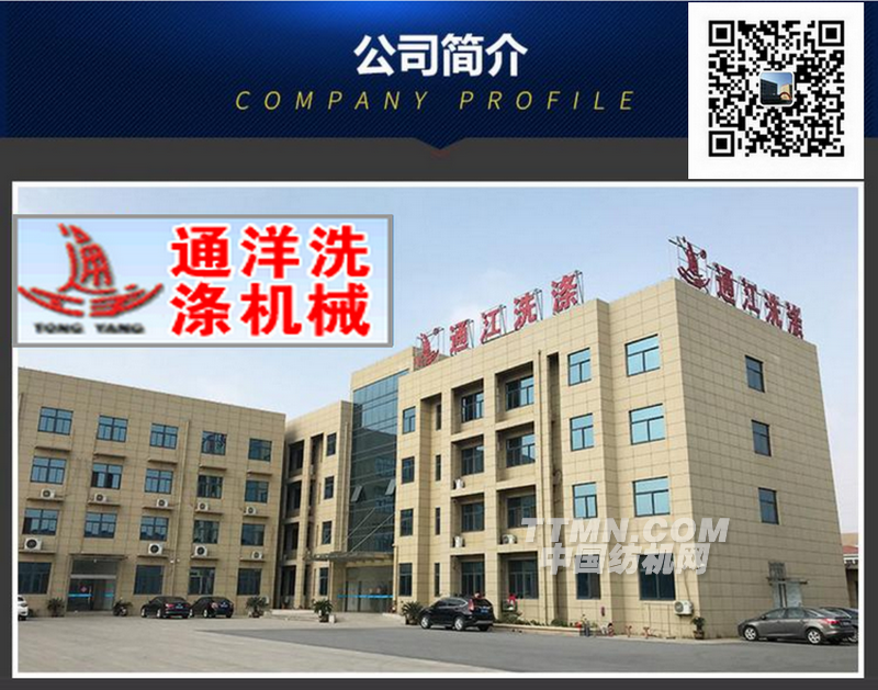 泰州市通江洗滌機械廠位于江蘇省泰州市江洲北路開發區,是中國洗滌機械協會會員單位,是國內生產服裝水洗機、工業洗衣機等機械設備最大企業之一,榮獲ISO9001:2000質量認證、自營出口權。 工廠專業設計、制造工業洗衣機,烘干機,脫水機,牛仔水洗機,石磨機,砂洗機,干磨機(造花機),成衣染色機,襪子染色機,毛衣砂洗機,洗脫兩用機、新型燙平機、染色機,牛仔水洗機, 乳膠烘干機、地毯清洗機、皮革揉紋機等系列產品。