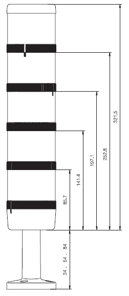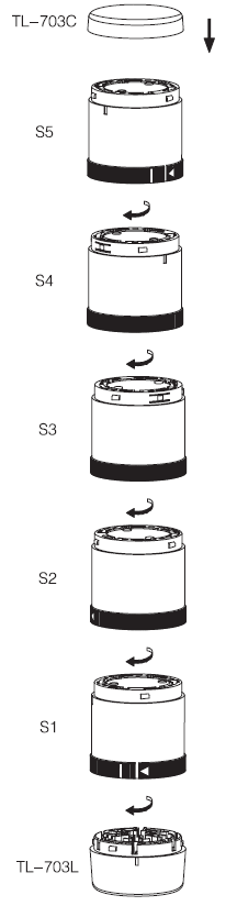 ■ 一臺警示燈最多能組合五個單元:五個光組件或四個光組件和一個聲組件組成