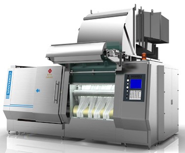 濕處理與機內直接干燥相結合,直接進行初級軋水,無須將濕整后的紡織品從機內取出即可進行烘干。烘干過程中通過風量將加熱的空氣透過滾筒上的紡織品,濕空氣及時排出,使干燥的周期縮短。