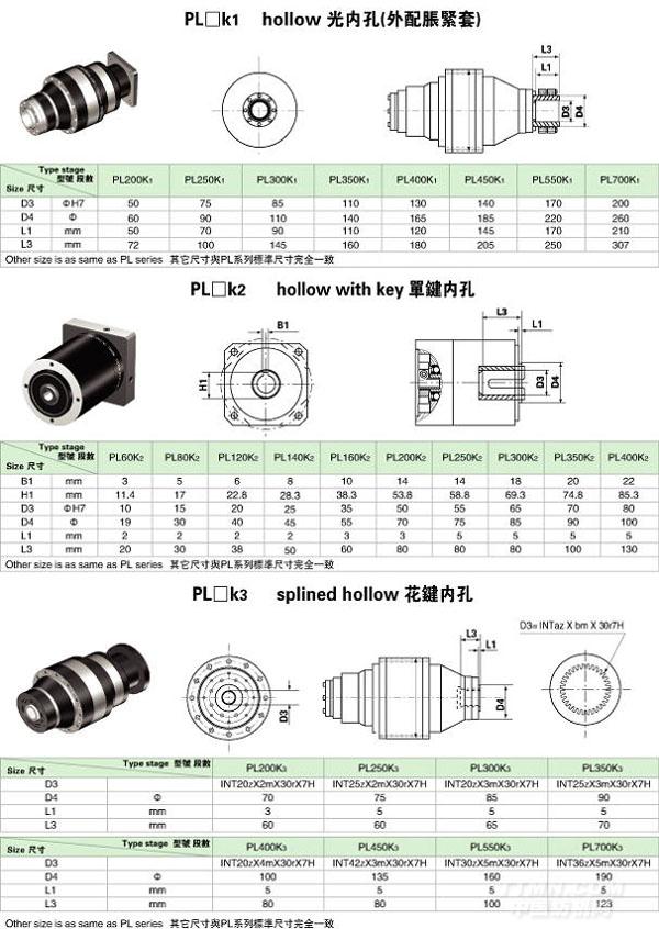 PL□K空心孔輸出外形尺寸