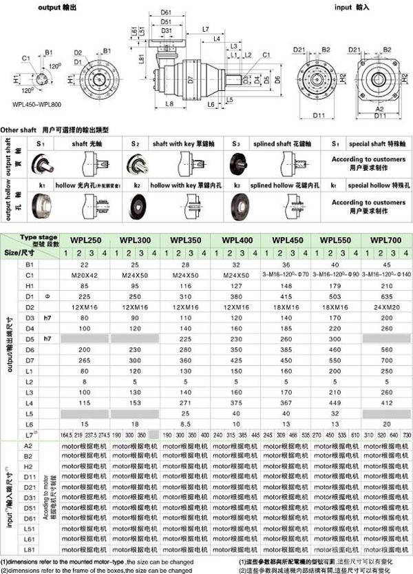 PL/WPL 系列精密行星減速機(jī)技術(shù)參數(shù)