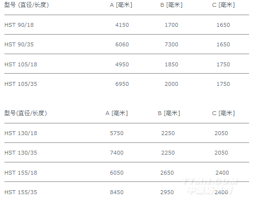 上文顯示標準機器技術數據,其它直徑/長度應要求而提供。