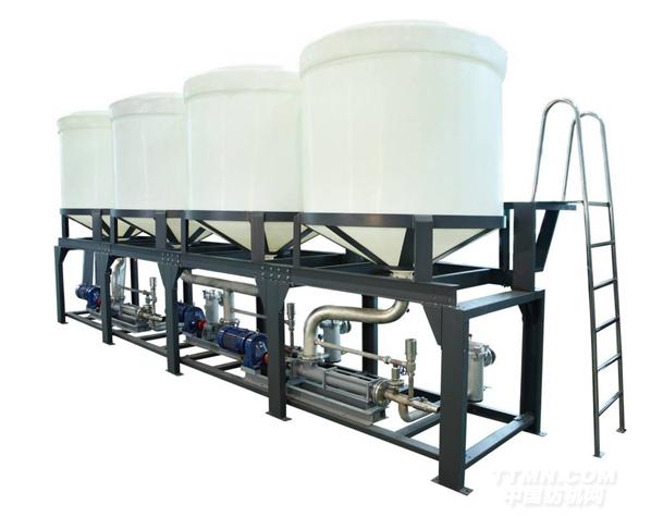 糊料準備系統根據印花糊料的工藝要求,通過工控機和PLC控制,進行自動加水、自動攪拌、管路過濾輸送及配料自動稱量和粘度控制,以保證印花色漿調制的穩定性和高效率。