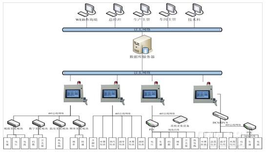 ②現(xiàn)場監(jiān)控終端——與數(shù)據(jù)采集設(shè)備實時通訊,對采集的數(shù)據(jù)多視圖顯示;將采集的數(shù)據(jù)通過網(wǎng)絡(luò)傳輸?shù)綌?shù)據(jù)庫服務(wù)器中存儲,并對實時數(shù)據(jù)進行判斷,超出正常范圍時進行聲光報警;以及根據(jù)生產(chǎn)指令進行條碼報工。