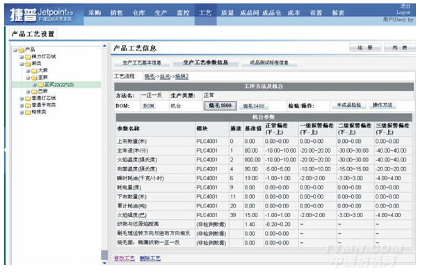 系統(tǒng)根據(jù)實時記錄下的機臺歷史操作信息,分產(chǎn)品和工藝建立完備的產(chǎn)品管理檔案。當(dāng)接到訂單時,系統(tǒng)根據(jù)歷史生產(chǎn)數(shù)據(jù)挑選最佳生產(chǎn)工藝流程,制定機臺最優(yōu)運轉(zhuǎn)參數(shù),并指導(dǎo)安排車間生產(chǎn)計劃。