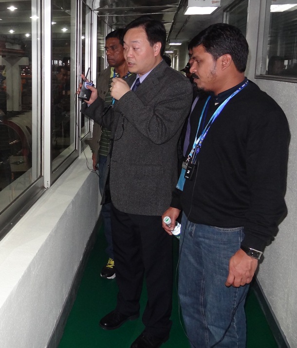 < 圖片 No. 6> 區域銷售經理鄭穩權先生帶領孟加拉客戶參觀立信染整的生產基地。