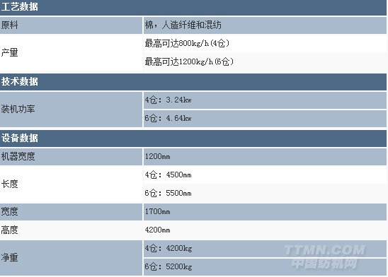 ●4個(gè)或6個(gè)混棉倉(cāng)