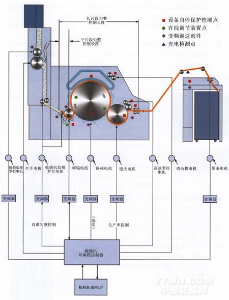 對錫林、道夫、刺輥、給棉羅拉、圈條、棉箱實行變頻調節。