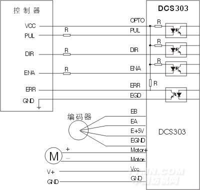 DCS303的編碼器接線只能采用AB單端輸入。