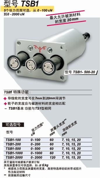 TSB1、TSB2在線傳感器連續測量低高張力范圍的膠片、繃帶等寬體材料的張力