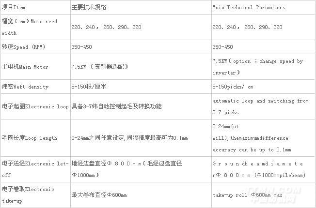 RFTL60型高檔毛巾劍桿織機采用電子送經、電子卷取、筘動式電子起毛圈機構,具有最先進的電子控制功能,毛圈可由3~7緯任意轉換,并可在運行中自動變緯密,除能織造普通毛圈織物外,還可織造高低毛、凸凹毛、波浪毛、單面毛等高檔毛圈織物。該機填補了國內高檔毛巾織機領域的空白,達到國際先進水平。