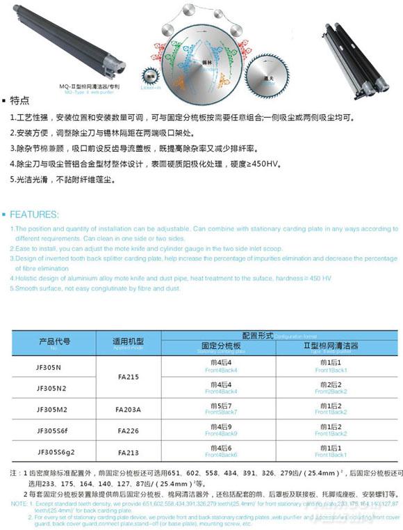 您所在的位置:紡機網 >> 浙江錦峰紡織機械有限公司 >> GFB-ⅢQ系列梳棉機固定分梳板裝置、Ⅱ型棉網清潔器