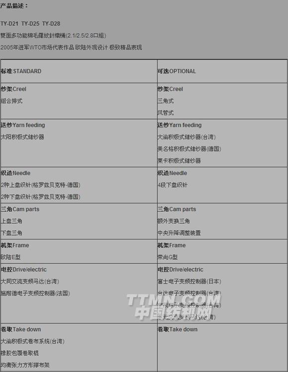 您所在的位置:紡機(jī)網(wǎng) >> 大渝機(jī)械(廈門)有限公司 >> 雙面多功能棉毛羅紋針織機(jī)TY-D21深綠色