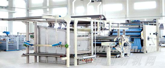 平幅進(jìn)布→汽蒸給濕(滲透)→三輥橡毯預(yù)縮→呢毯整理(烘燥)→平幅落布