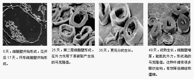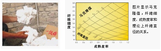 馬克隆值包括棉纖維細度和成熟度的測量,成熟度顯示棉纖維細胞壁的生長狀況。不成熟的棉纖維細胞壁比成熟的纖維細胞壁更薄。使用成熟棉纖維紡紗,可提高紗線的橫截面內的棉纖維根數,從而提高紗線的張力和柔韌性;使用不成熟的棉纖維紡紗,容易產生棉纖維伸張和纏結,這將降低紡紗效率和質量。
