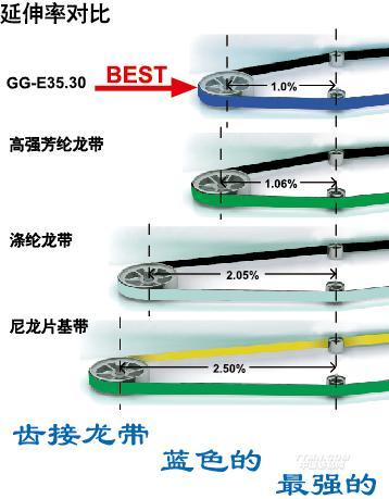 新型齒接傳動帶GG-E系列,其強力層采用Polyester材質(zhì),不同于傳統(tǒng)尼龍片基傳動帶,模量大,接口無方向性,具有不可比擬的特點與優(yōu)點。