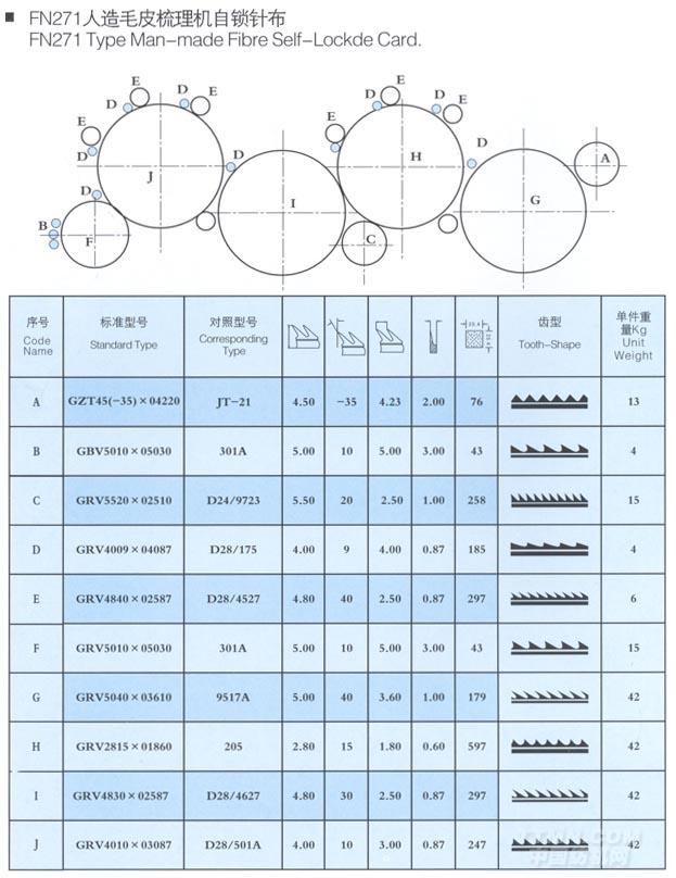 FN271 人造毛皮梳理機自鎖針布