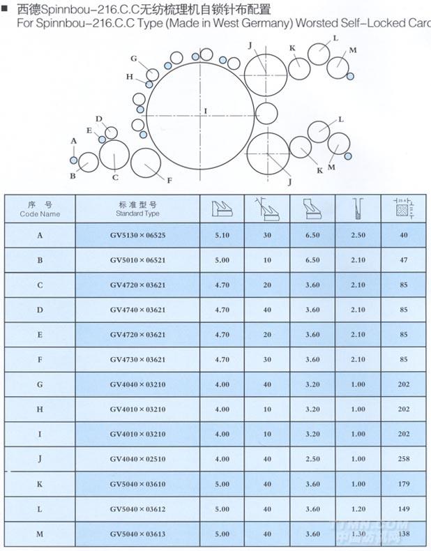 您所在的位置:紡機網(wǎng) >> 光山白鯊針布有限公司 >> 西德Spinnbou-216.C.C無紡梳理機自鎖針布配置