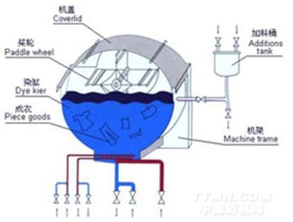 ★ 采用精確的正反轉控制器,自動控制漿葉正反運作,使缸內織物均勻翻動,確保織物染色均勻。
