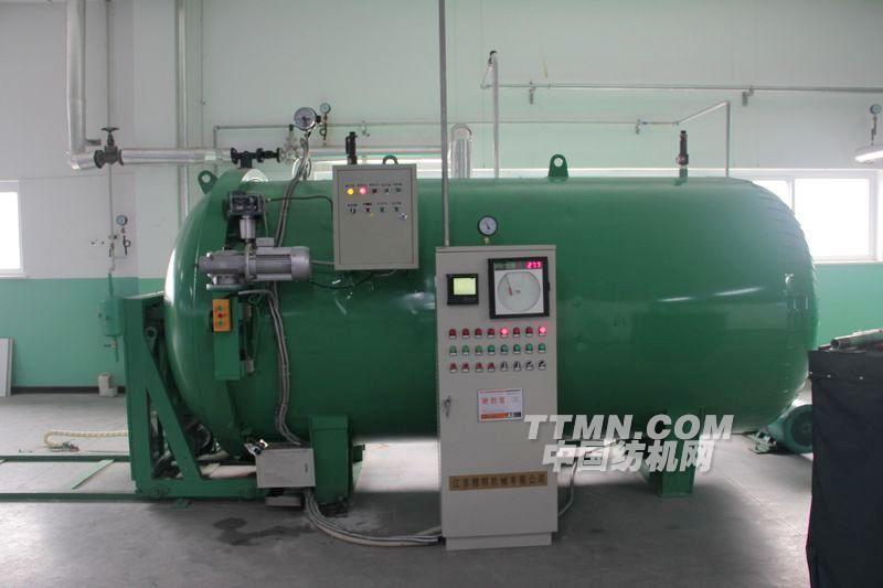 我公司吸收國外同類產品的精華而研制的新型自動真空蒸紗機,以下簡稱“蒸紗機”具有全自動化控制,生產效率高等優點。成為目前理想的給濕定型設備。它適用于以棉、麻、毛、真絲、化纖等為原料的紡織單位,其用途是將具備織造條件的絲線在合并加捻后進行給濕定型,即在多次真空和一定溫度范圍下增加濕度,降低紗線伸縮率,改善產品手感、光澤度,提高紗線張力、強度,同時消除靜電及各部分的不平衡應力。該蒸紗機的使用特點是:適用范圍廣泛,定型后產品的物理性能如:強力、伸長度等不受影響,同時使針織效率提高10%;整經、織造效率提高15%;又使染色布均勻,還可以降低失重率.