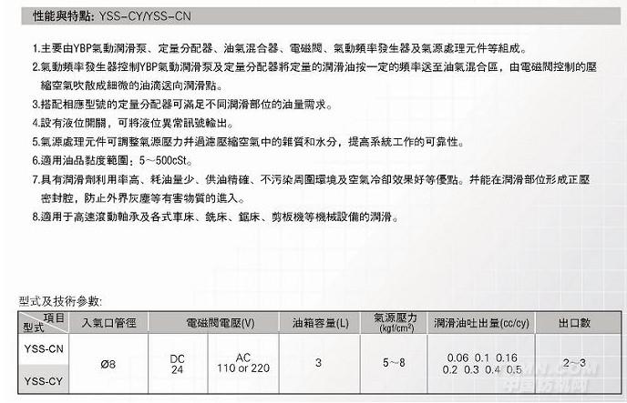 >> YSS氣動式微量潤滑系統