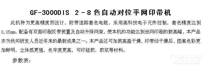 您所在的位置:紡機(jī)網(wǎng) >> 肇慶市金輝印刷機(jī)械有限公司 >> GF-3040DIS 自動(dòng)對(duì)位平網(wǎng)印帶機(jī)