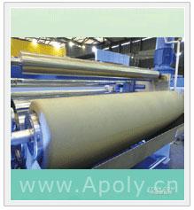 APOLY預縮毯採用帶狀纏繞式,此工法可以有效避免內裂且杜絕大規模片包式所引起的氣泡及裂口,且搭配1000噸加壓確保預縮毯材質充分緊密結合且於高速運轉時橡毯具有精確配重能保持縮率穩定。