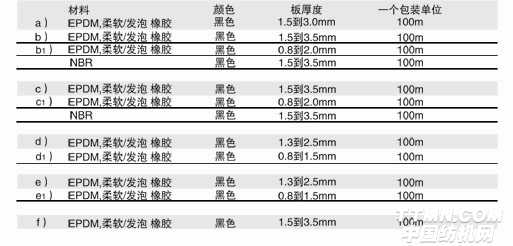 密封條,通過自夾緊,既起到密封的作用,又保護了切口鋒利的邊緣。基底部分由軟橡膠制成,內(nèi)嵌鋼絲。密封部分由橡膠發(fā)泡而成材料:EPDM或NBR基底:軟橡膠。密封:發(fā)泡橡膠。